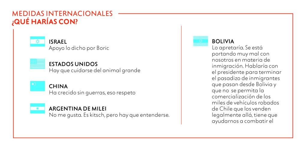 Chile no puede recibir más inmigrantes irregulares. El país es como una casa: si entran por la ventana, tienes derecho a pedirles que se vayan. Lo digo con claridad: mi primer discurso como presidente será para decirle a Latinoamérica que Chile ya no puede recibir más.